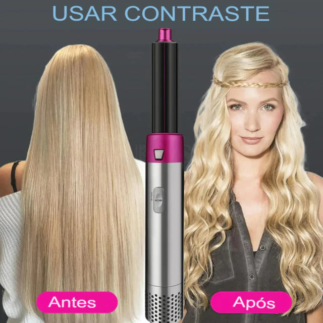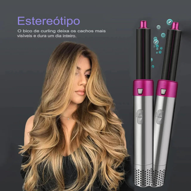 5 Acessórios em 1 — alisador, modelador de cachos, escova de volume, escova de alisamento e difusor